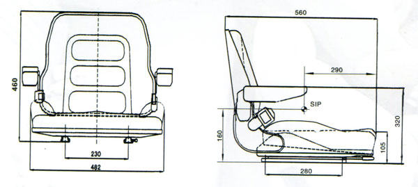 座椅為叉車及其它工業(yè)車輛設(shè)計的經(jīng)濟(jì)型駕駛員座椅。它沒有懸浮裝置。但其座背、靠背均采用真空發(fā)泡一次成型技術(shù),便于拆換。